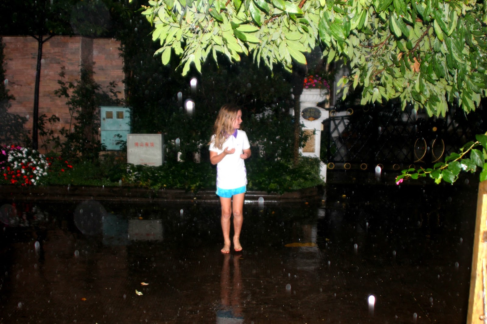 ADVENTURES: This week's adventure is based around the week of Easter. On top of that, the rainy season has begun. It didn't come in a mild mannered way. It rolled in like a brigade of tanks all at once. One day, it is nice and sunny with a slight breeze and then the next it is dark and rainy with thunder and lightning like Zeus himself is sitting above our community throwing the lightning bolts himself. It is actually quite cool. The thunder and lightning shows are more spectacular that all the fireworks on Chinese New Year. On top of that I have experienced a phenomenon here like none other. As the storms roll in, usually in the late morning or early afternoon, the sky becomes darker than I have ever seen. Literally at 10 in the morning on Thursday, the storm rolled in so dark and furious that it obliterated the sun. When I mean obliterated the sun, I mean 10 am became 10 pm. It got so dark that the street lights in the neighborhood around school came on and the evening lighting in the halls did as well. The thunder and lightening then came crashing down on us. It was quite the light show. Finally the rain came in sheets. There was so much water coming off the roof of my classroom that it looked like I was looking through the backside of a waterfall. To put it into one word, it was AWESOME!!!!!! The storms come in so fast that I was caught off guard the other day while riding my bike out to the golf course. When I started off it wasn't raining. I got about halfway and there was a little mist. Three quarters of the way there, it started to get a little heavier so I waited under a road overpass. The precipitation came and went so I headed out again. I went up onto the bridge and got about half way across when I was struck in the side of the face with the largest raindrop I had ever experienced. It felt like getting hit by a water balloon. It literally exploded on the side of my face and soaked my neck and right shoulder. Oh, but that was only the beginning. After being assaulted by the sky I began riding for my life. I had about 100 yards of bridge to make it to the other side and shelter. Unfortunately the sky had other ideas. Within 50 yards I was barraged by a sky that empty like a 50 gallon drum being poured over my head. By the time I made it to the end of the bridge and sanctuary I was soaked from head to toe all the way to the bone. The only saving grace, is that despite the rain it is still 75 to 80 degrees. I think I mentioned it once before, but it is still a strange feeling to be sweating and getting rained on at the same time.